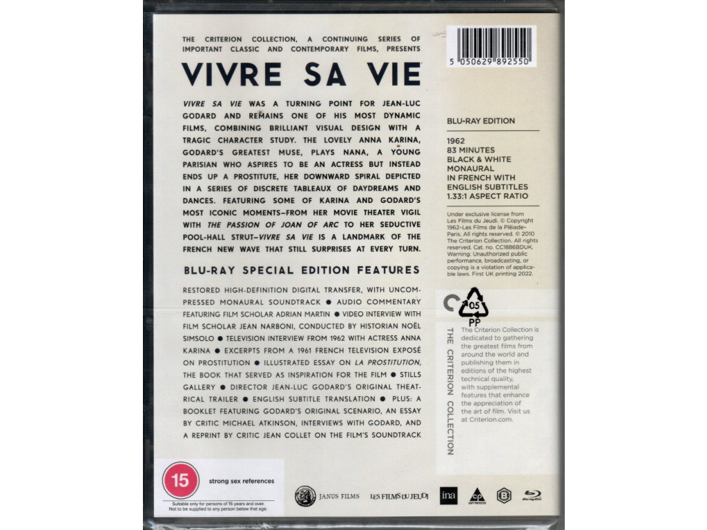 Vivre Sa Vie Blu-Ray